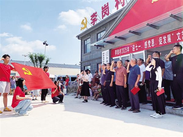 日前,黨員干部面向黨旗重溫入黨誓詞。商水縣平店鄉(xiāng)李崗村黨支部通過(guò)舉辦一場(chǎng)文藝匯演、共上一堂黨課、表彰一批優(yōu)秀黨員、重溫一次入黨誓詞等活動(dòng),慶祝中國(guó)共產(chǎn)黨成立104周年。
